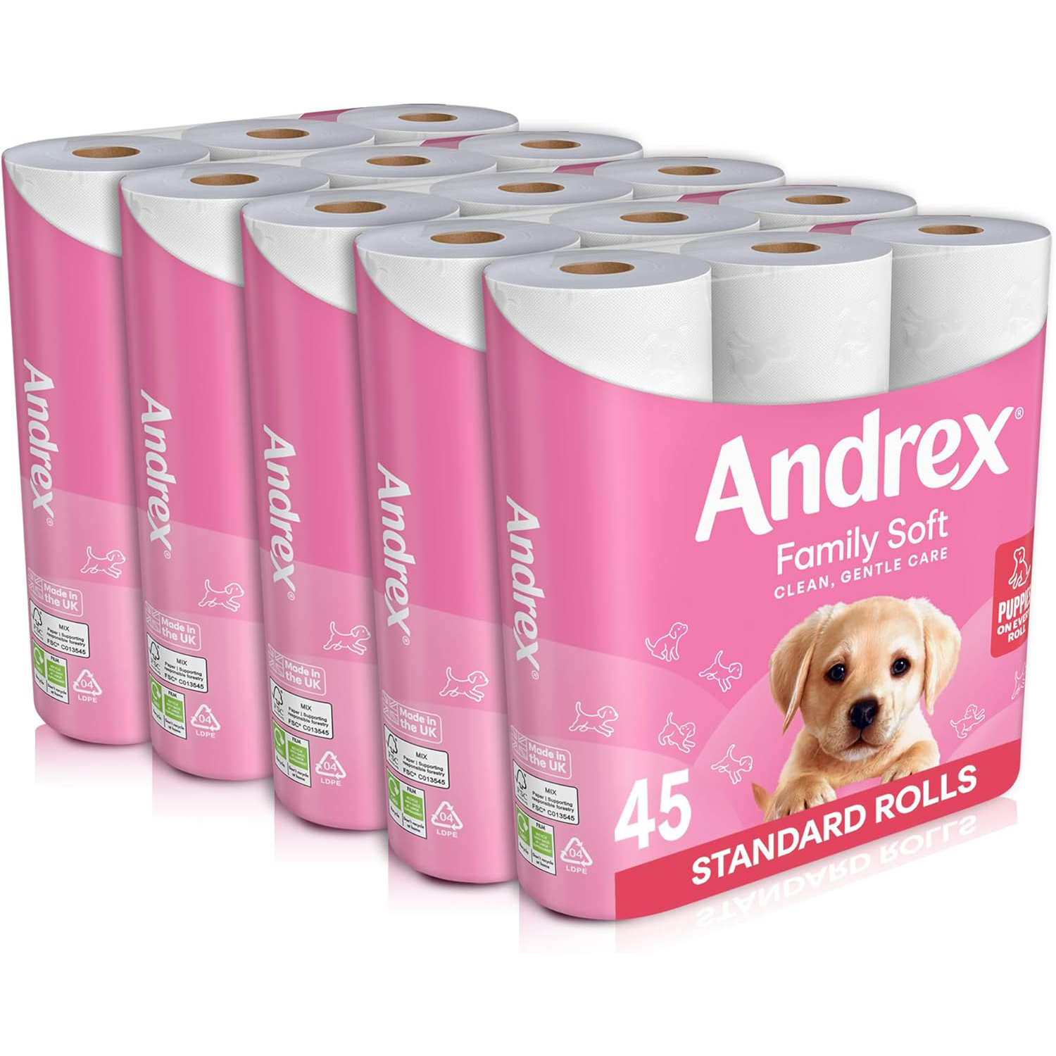 - Family Friendly: Each toilet roll is embossed with our lovable soft Andrex puppy, combining a touch of softness with an adorable design that is uniquely Andrex
