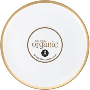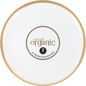 - SIZE & COLOR: Plasticpro 14” X 14” Plastic Round Serving Tray, Party Platter White Tray with gold rim pack of 2