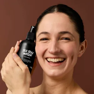 – For skin that’s feeling a little off kilter, tea tree water brings the balance, helping skin to feel soothed and clear.